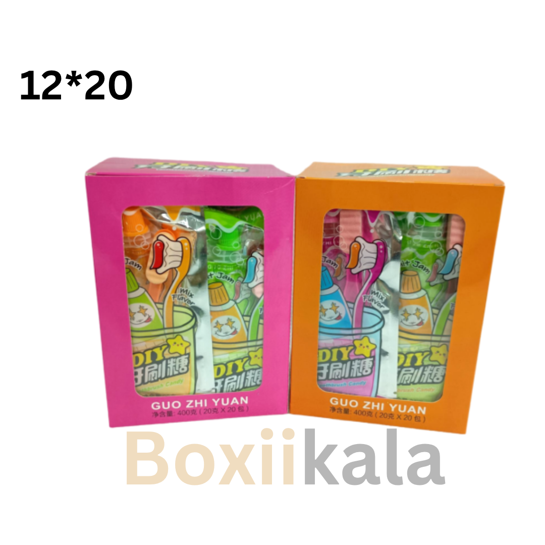 آبنبات مسواکی و ژله میوه خمیر دندون کارتن 12بسته 20عددی