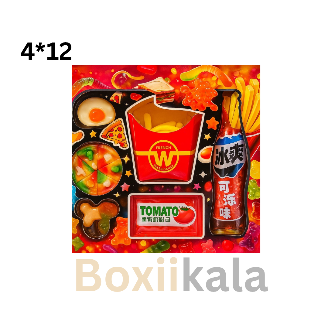 پاستیل فست فود پیتزا و نوشابه سیب زمینی کارتن 4بسته 12عددی